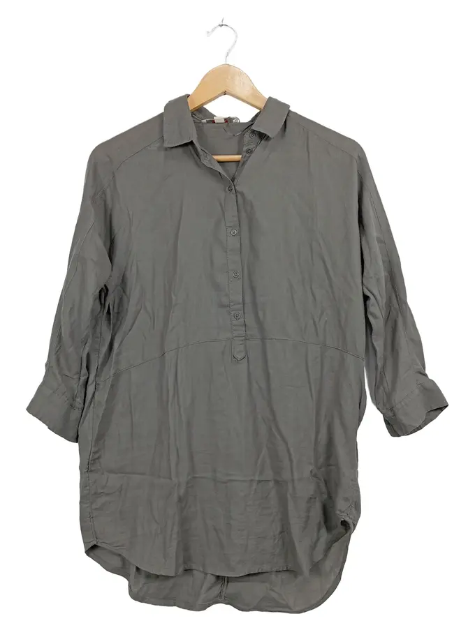 Damen Hemdbluse Gr. 34/XS Grau Langarm Viskose Baumwolle