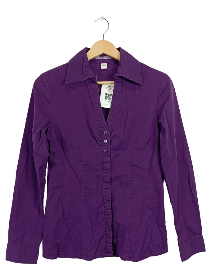 Damen Hemdbluse Gr. 34 XS Lila Langarm Slim Business
