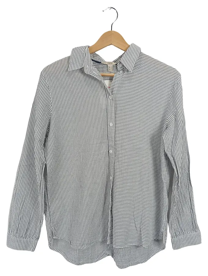 Damen Hemdbluse Gr. 36/S Blau Weiß Gestreift Baumwolle