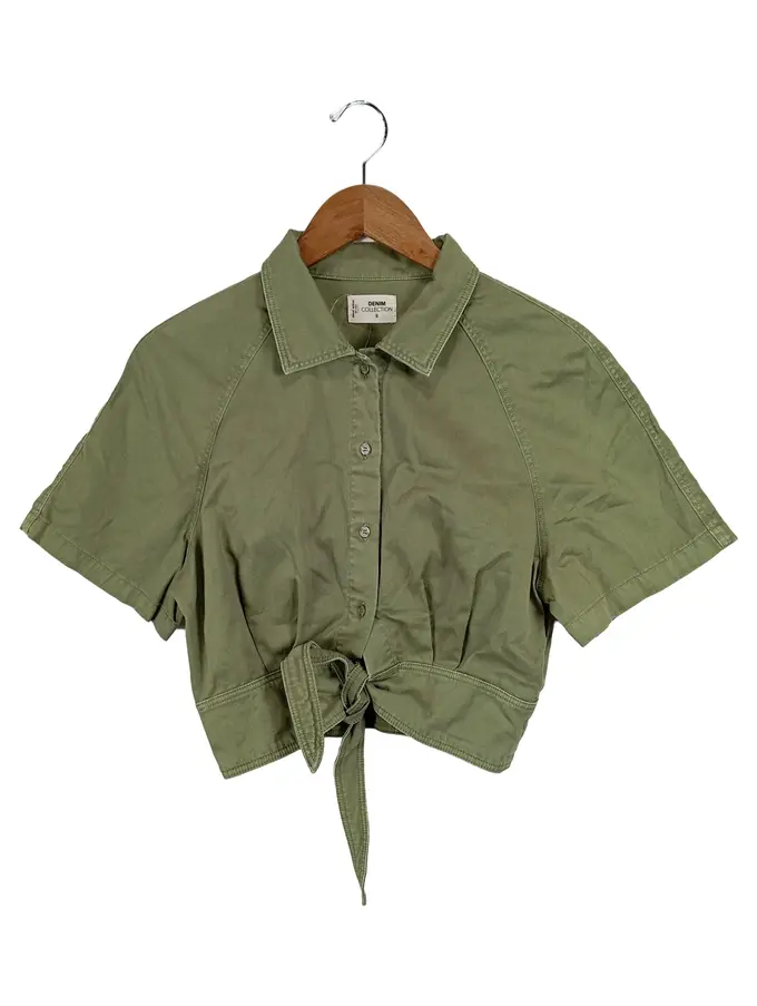 Damen Hemdbluse Gr. 36/S Oliv Kurzarm Casual