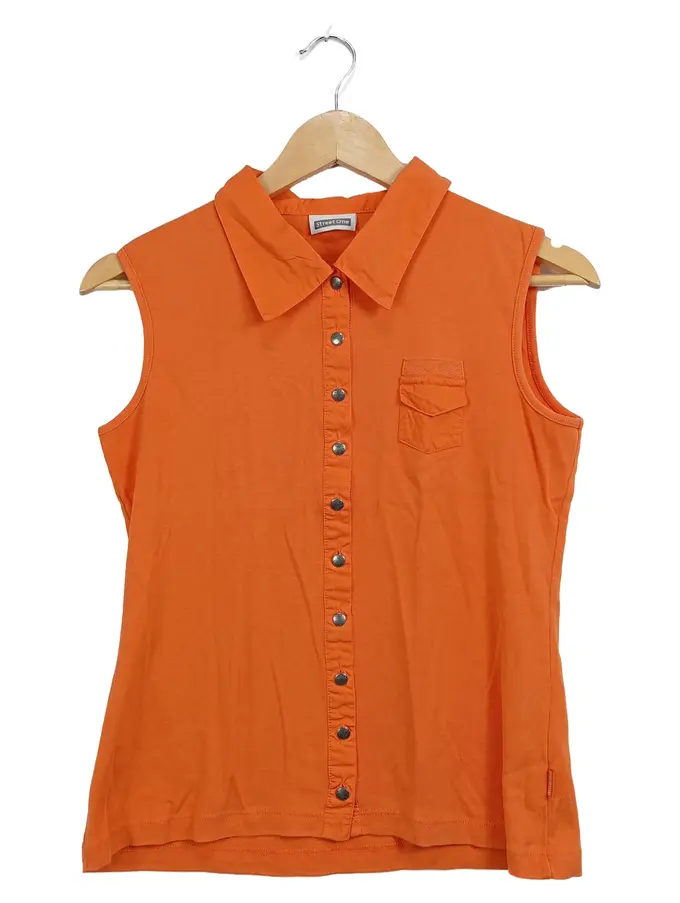 Damen Hemdbluse Gr. 38;M Ärmellos Orange Casual Baumwolle