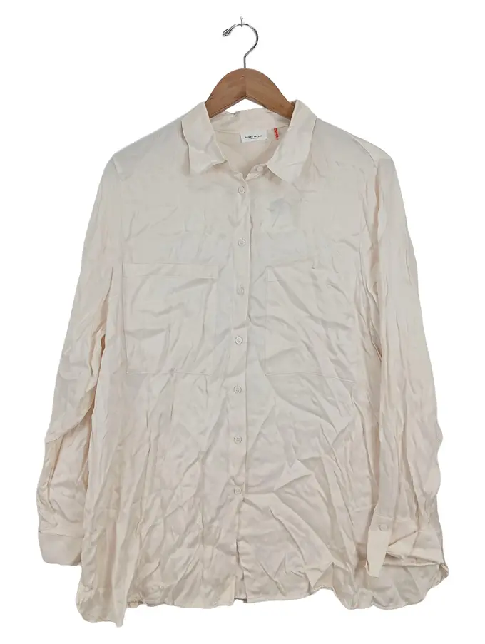 Damen Hemdbluse Gr. 38 M Beige Business Langarm Uni