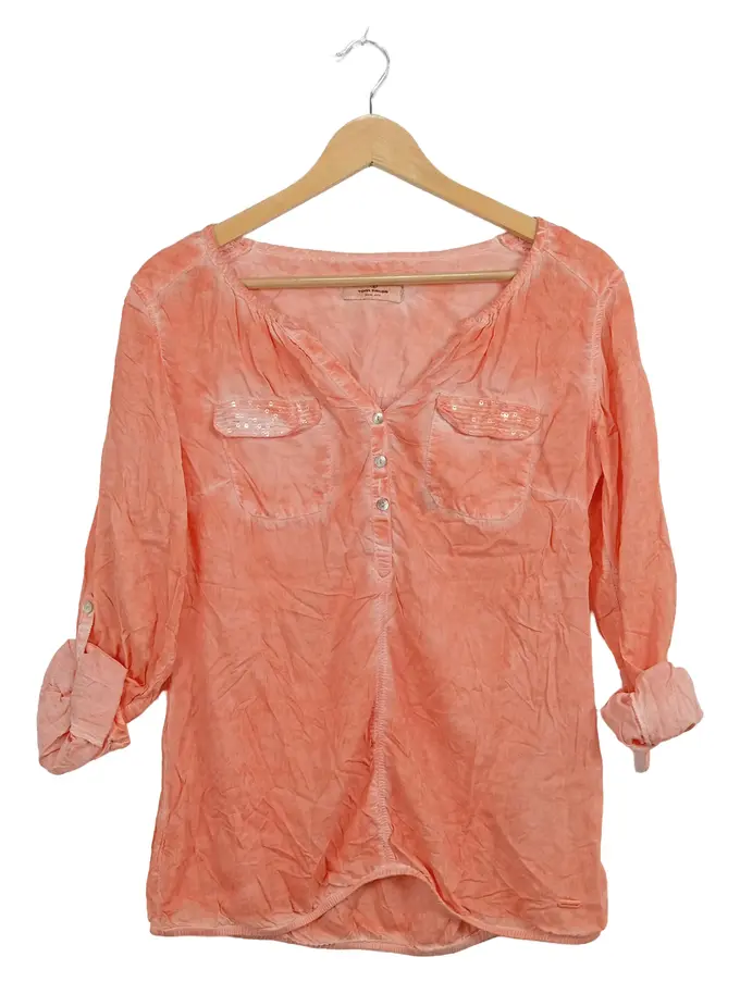 Damen Hemdbluse Gr. 38 Orange Viskose Pailletten Casual