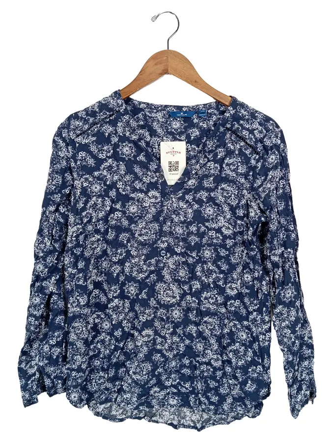Damen Hemdbluse Gr. 40 Blau Blumenmuster Casual Viskose
