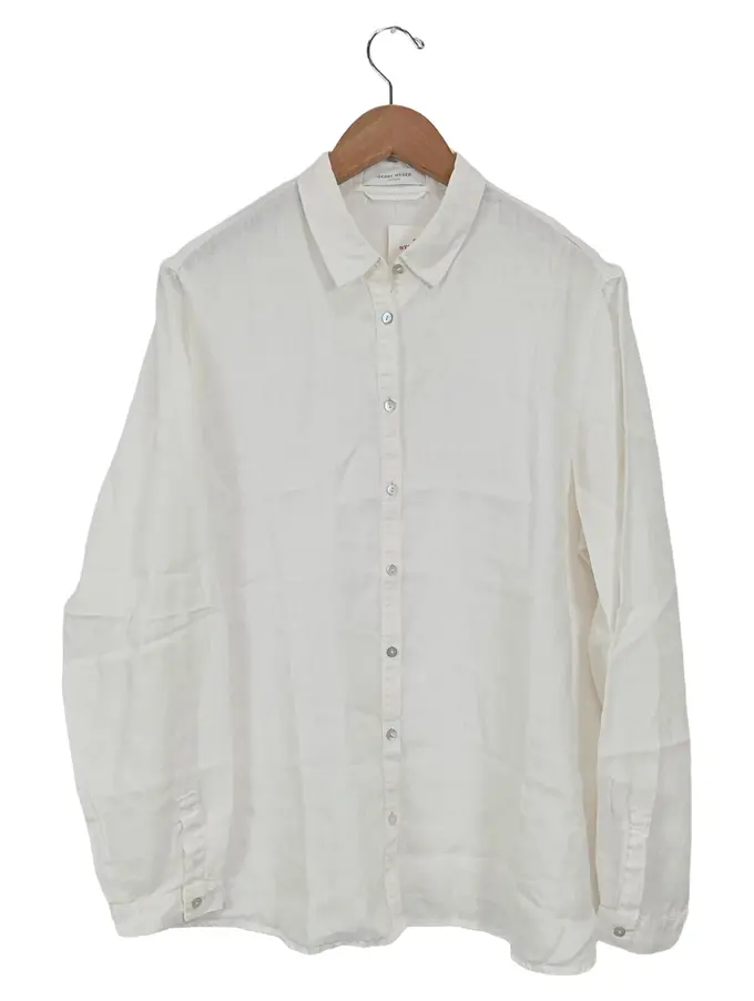 Damen Hemdbluse Gr. 42 Weiß Casual Langarm Bluse