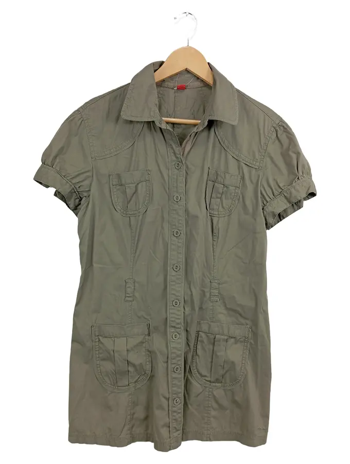 Damen Hemdbluse Gr. 42 XL Oliv Kurzarm Casual Bluse