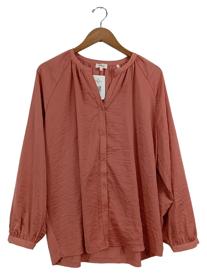 Damen Hemdbluse Gr. 44/XXL Orange Casual Langarm