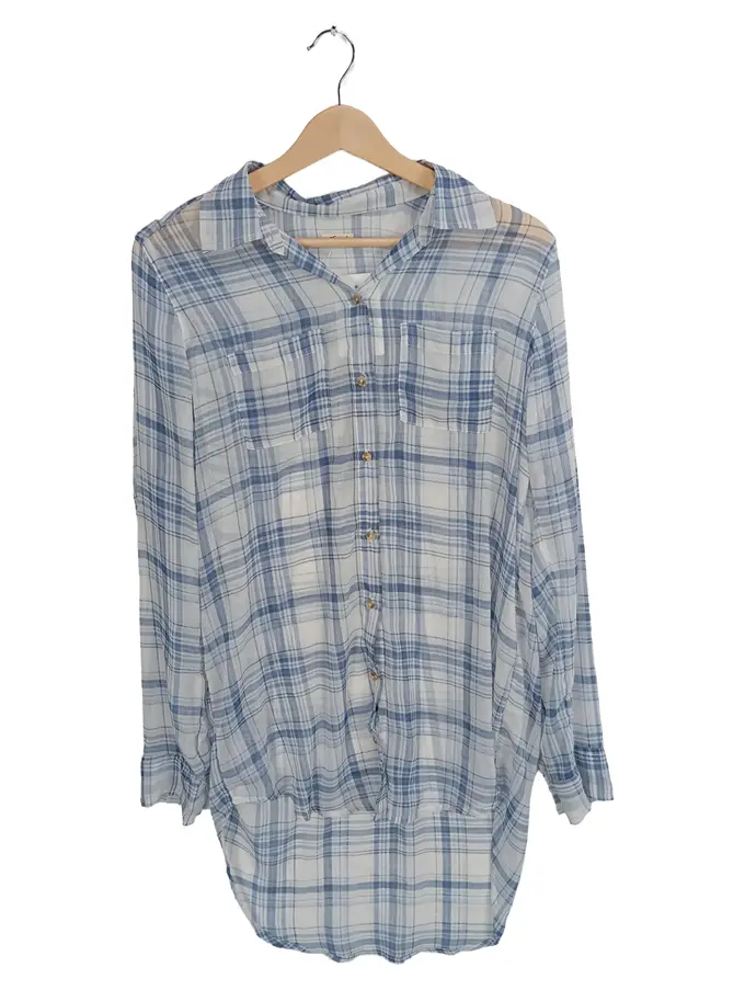 Damen Hemdbluse kariert blau weiß Gr. 36/S Casual Langarm Bluse