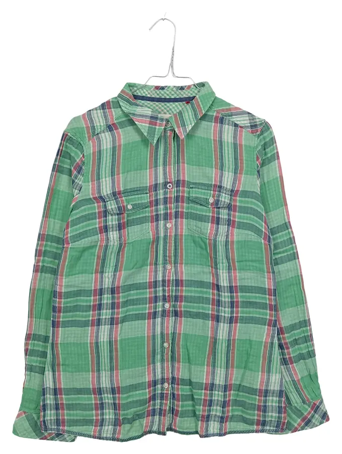 Damen Hemdbluse Kariert Gr. 38/M Grün Baumwolle Langarm