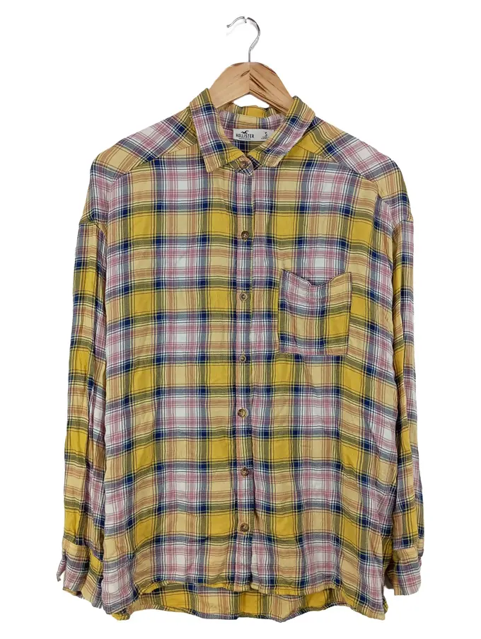 Damen Hemdbluse Kariert Mehrfarbig Gr. 36/S Langarm Viskose