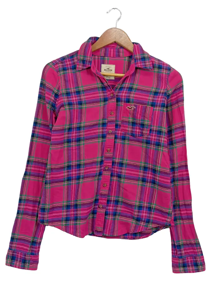 Damen Hemdbluse Kariert Pink S Langarm Baumwolle