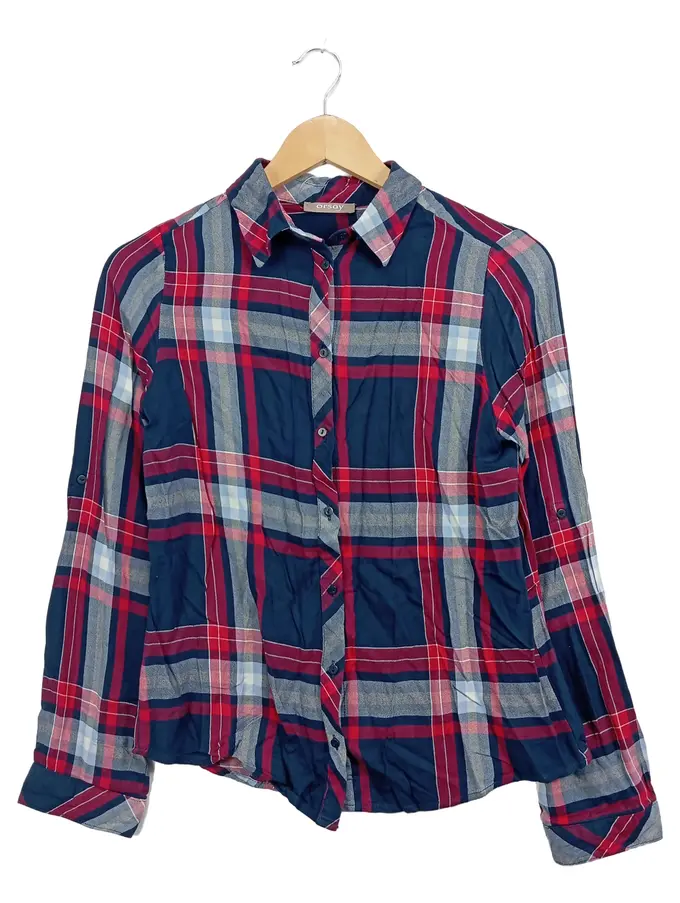 Damen Hemdbluse Karo Gr. 34 XS Mehrfarbig Viskose Casual