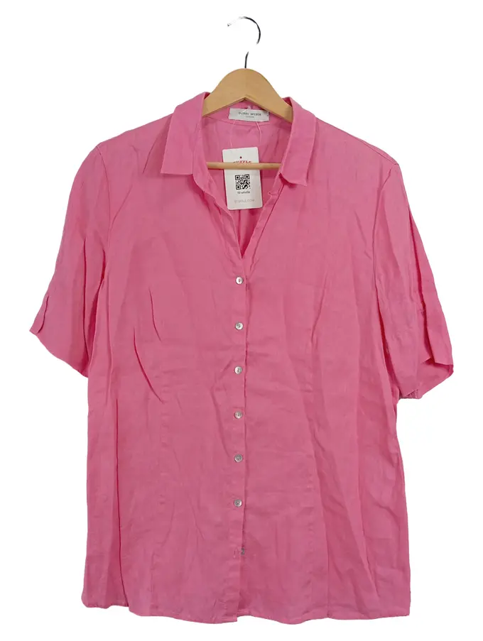 Damen Hemdbluse Kurzarm Pink Gr. 40 Casual Leinen