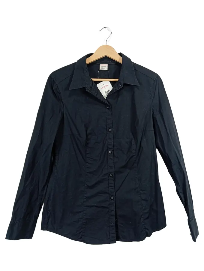 Damen Hemdbluse Langarm Schwarz Gr. 40 Baumwolle Basic
