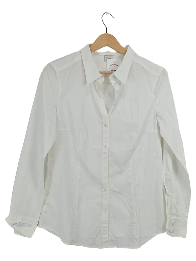 Damen Hemdbluse Langarm Weiß Business Gr. 40 Baumwolle