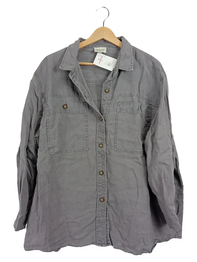 Damen Hemdbluse Leinen Grau Gr. 42/XL Casual