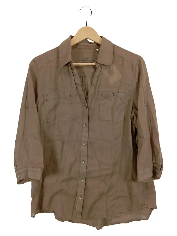 Damen Hemdbluse Leinenoptik Braun Gr. 38/M Casual 3/4-Arm