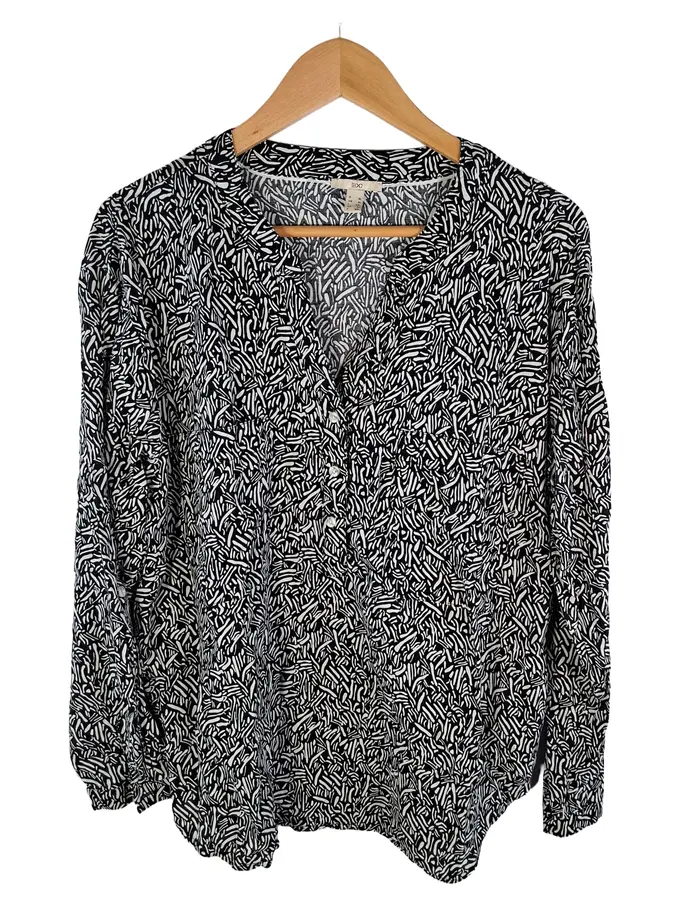 Damen Hemdbluse Schwarz Weiß Muster Gr. XL Langarm Viskose
