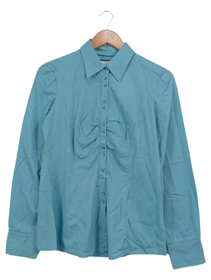 Damen Hemdbluse Türkis Gr. 36/S Klassisch Baumwolle Langarm