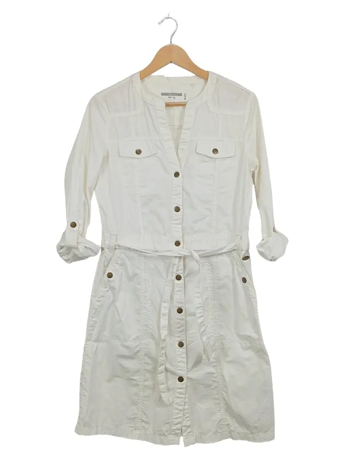 Damen Hemdblusenkleid Gr. 36 Weiß Baumwolle Safari-Stil