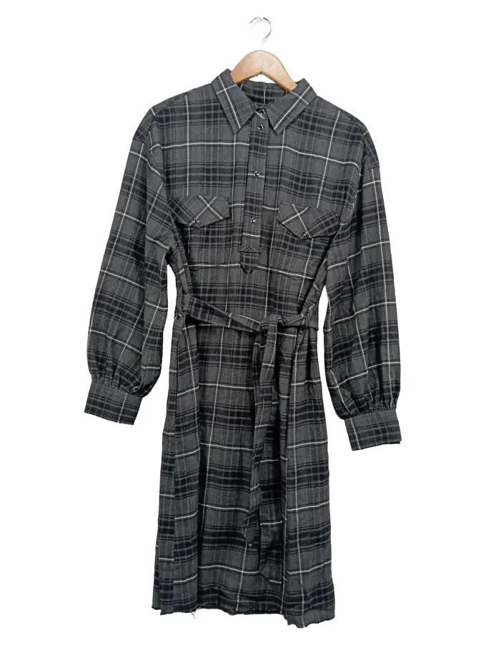 Damen Hemdblusenkleid Gr. 38 Langarm Kariert Baumwolle Casual Midi