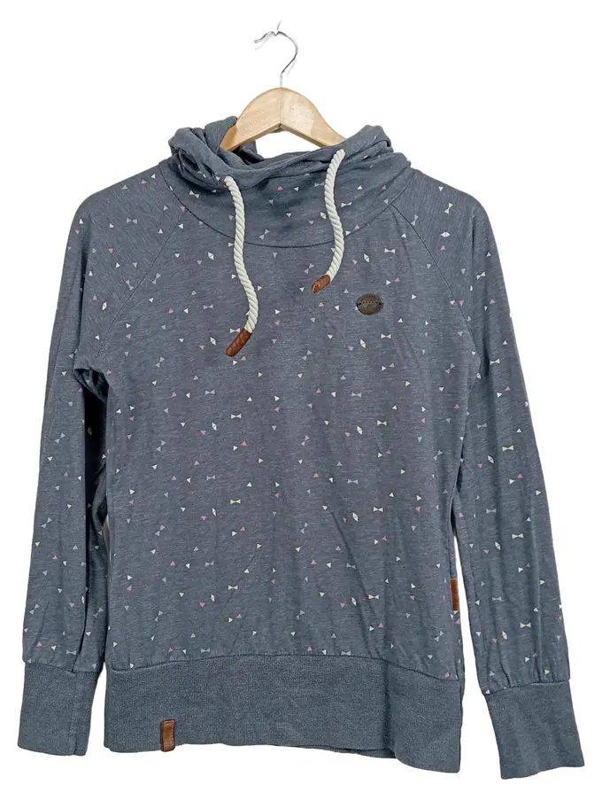 Damen Hoodie Kapuzenpullover Grau Muster Gr. M