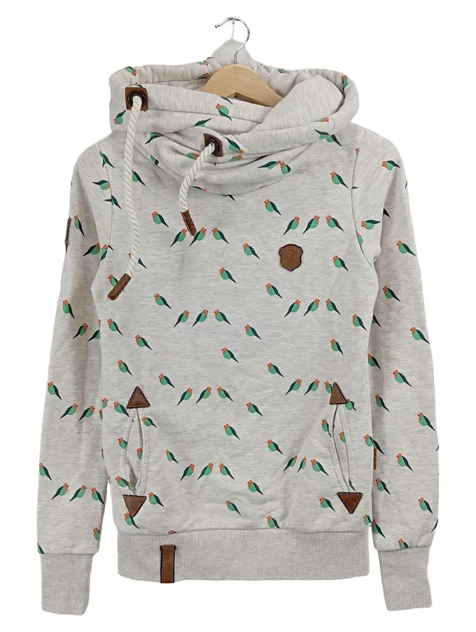 Damen Hoodie Kapuzenpullover Vogelmuster Grau Gr. XS
