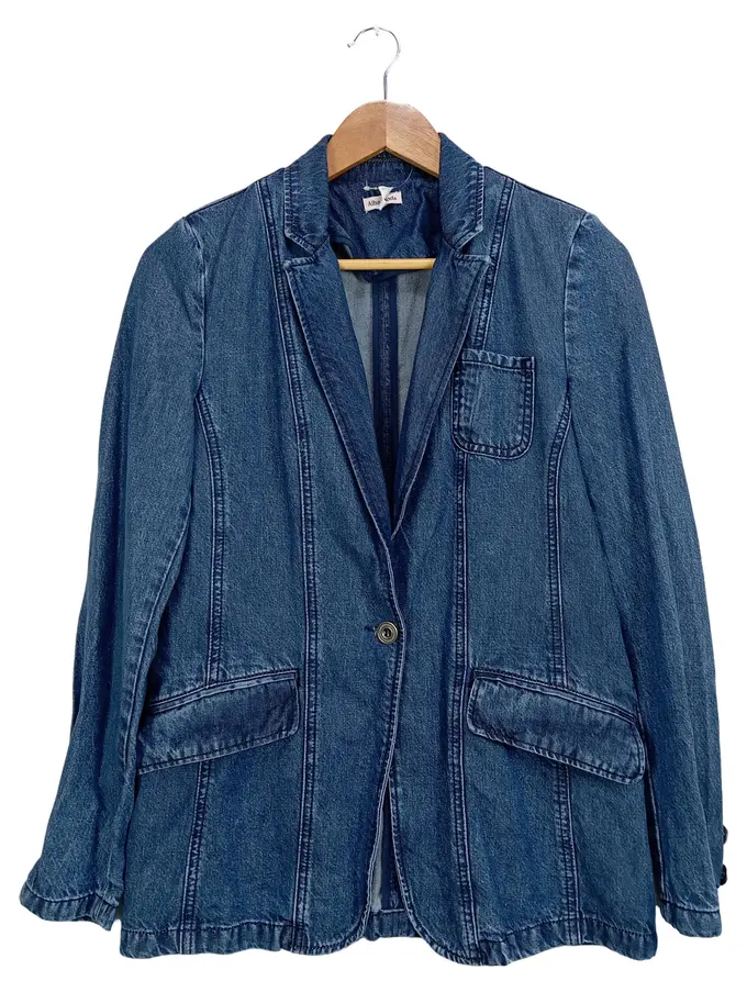 Damen Jeans Blazer Gr. 36/S Blau Casual Langarm Baumwolle