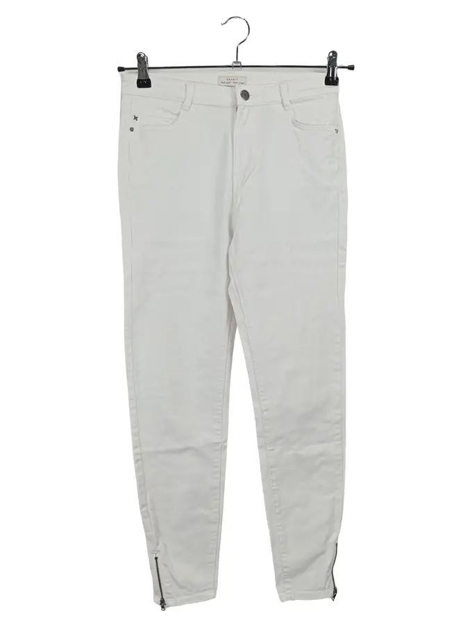 Damen Jeans Hose Straight Leg Gr. 34 Weiß Casual Reißverschluss-Details