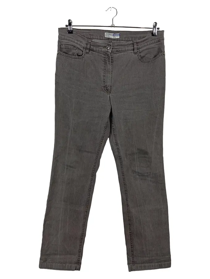 Damen Jeans Regular Fit Gr. 44 Grau Stickerei Strass