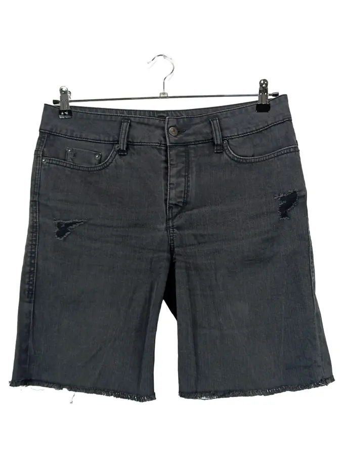 Damen Jeans Shorts Grau W29/38 Casual Fransen Cut-Outs Baumwolle