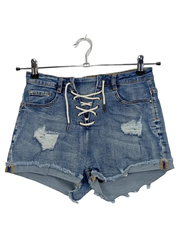 Damen Jeans Shorts M/36 Destroyed Look Schnürung Blau Denim