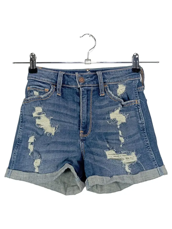 Damen Jeans Shorts W23 Blau Distressed High-Rise Casual
