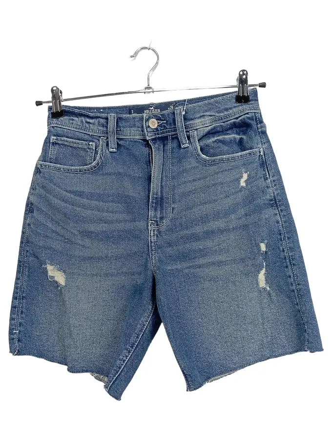 Damen Jeans-Shorts W26 Blau Casual Distressed Fransen