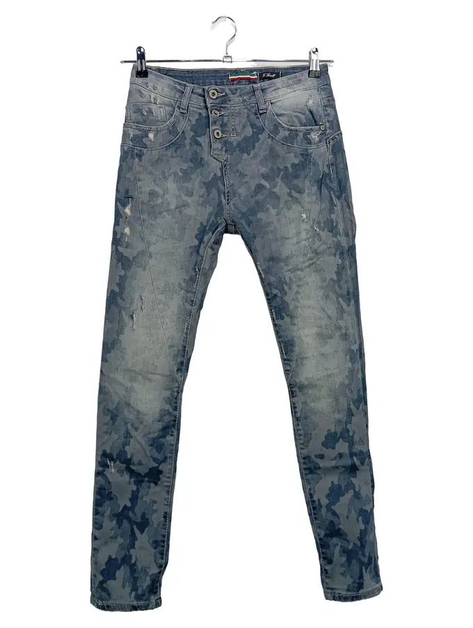 Damen Jeans Slim Fit Blau Camouflage Gr. S W28/36 Used Look