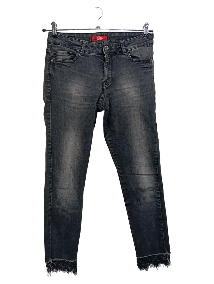 Damen Jeans Slim Fit Grau Gr. 36/S Baumwolle Elasthan Freizeit