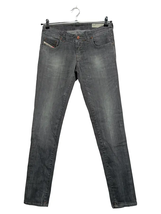 Damen Jeans Slim Fit Grau W32 L32 Stretch Denim Used Look