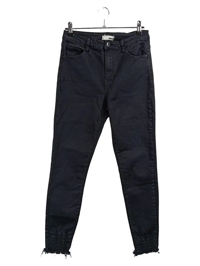 Damen Jeans Slim Fit Hose Schwarz Gr. 42 Stretch Fransen