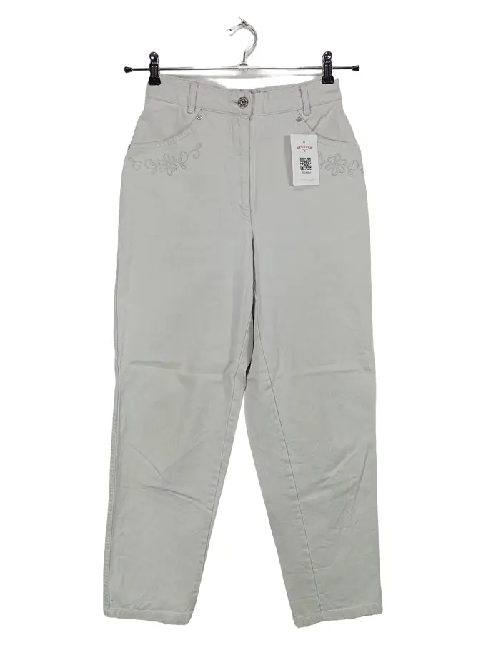Damen Jeans Straight Leg 36 Beige Uni Stickerei Baumwolle