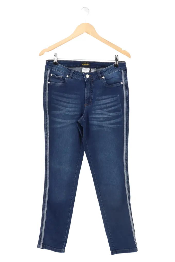 Damen Jeans Straight Leg Gr. 38/M Blau Casual mit Seitenstreifen