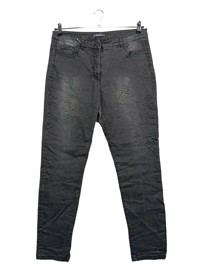 Damen Jeans Straight Leg Gr. 44 Grau Paisley Muster Stretch