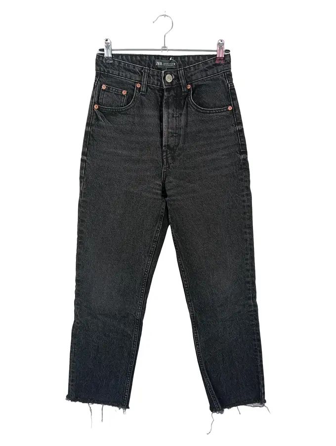 Damen Jeans Straight Leg W26/34 Schwarz High Waist Casual