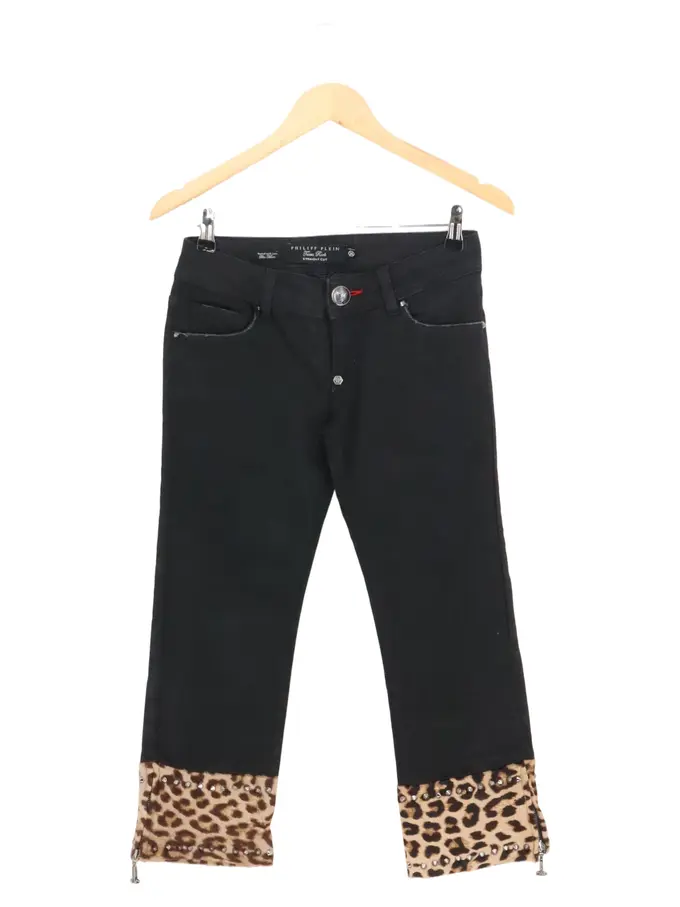 Damen Jeans W26/34/XS Schwarz Texas Rock Leopard Nieten Straight Leg