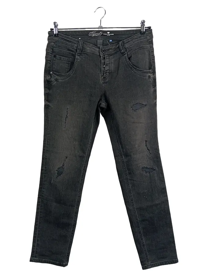 Damen Jeans W28 Schwarz Tapered Fit Distressed Casual