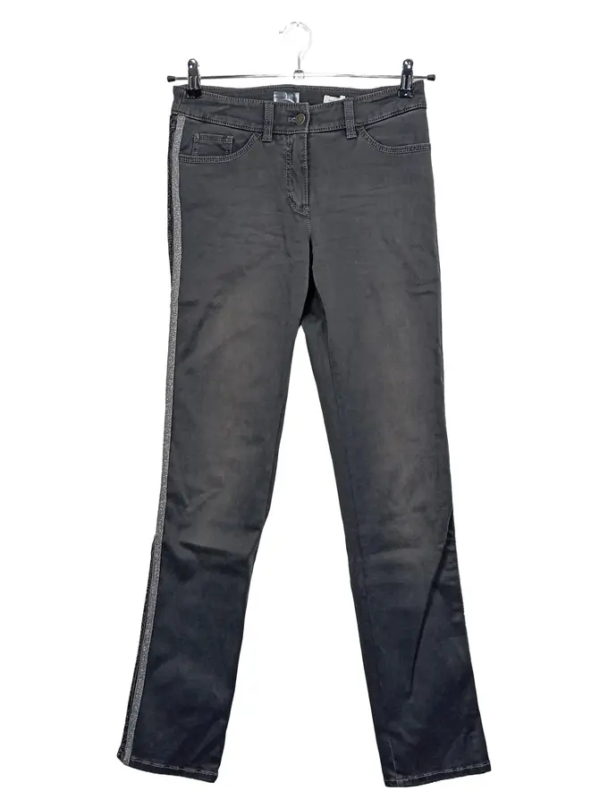 Damen Jeans Wide Fit Hose Gr. 36 Grau Modern mit Seitenstreifen