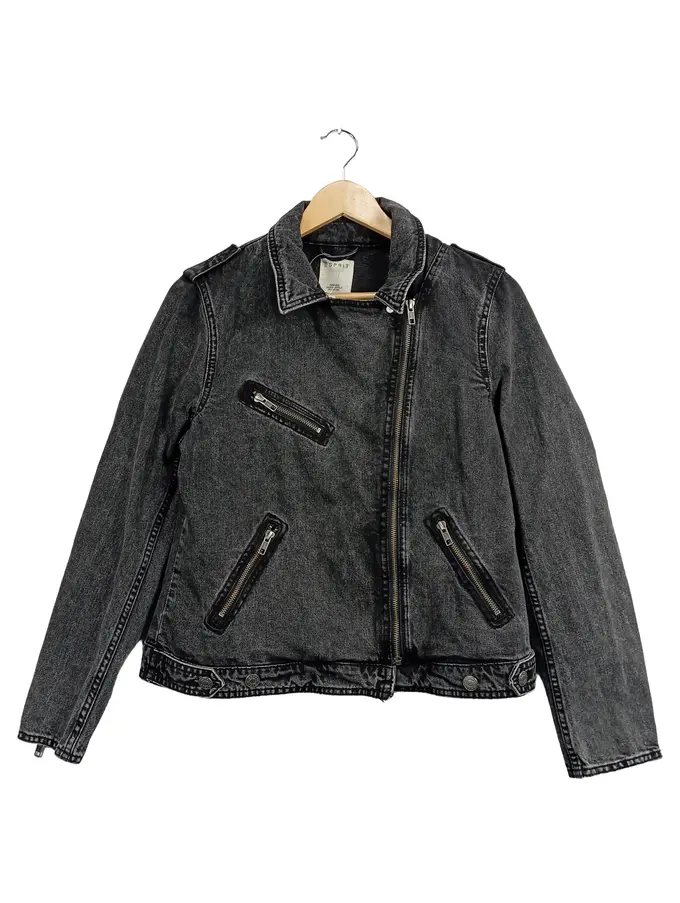 Damen Jeansjacke Biker Stil Grau Gr. 40/L