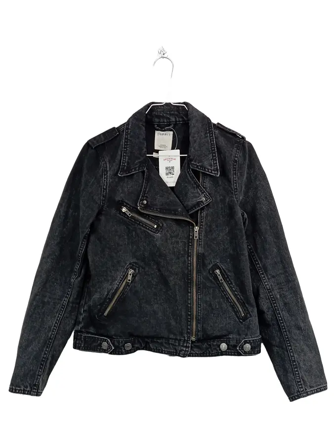 Damen Jeansjacke Biker Stil Schwarz Gr. S 36 Denim