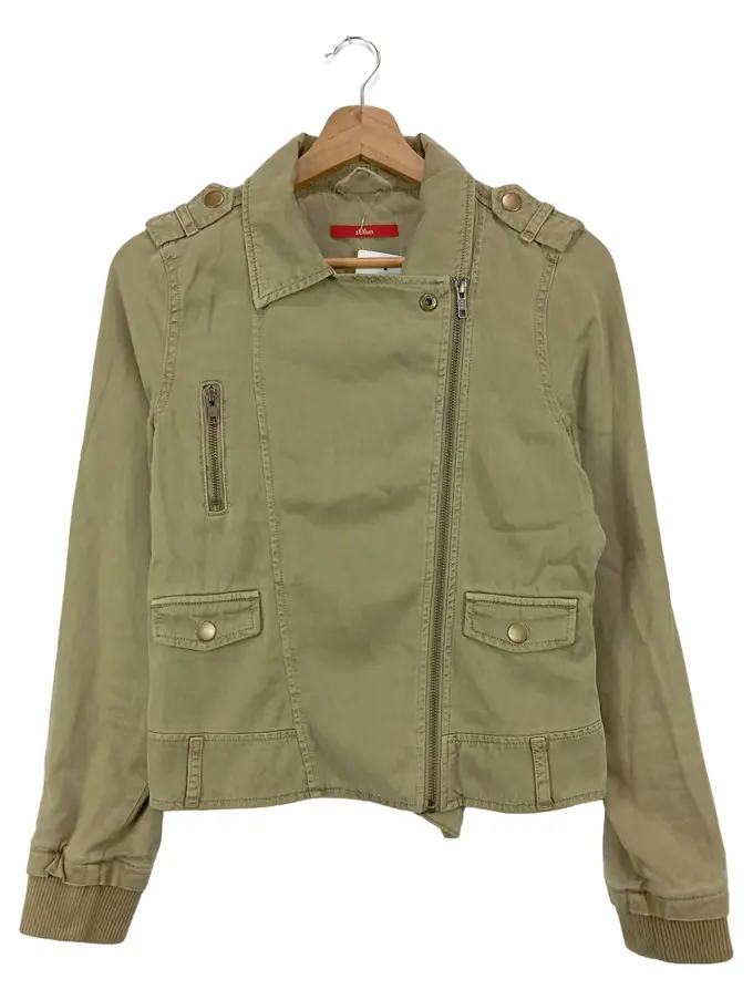 Damen Jeansjacke Gr. 34/XS Beige Casual Biker Jacke