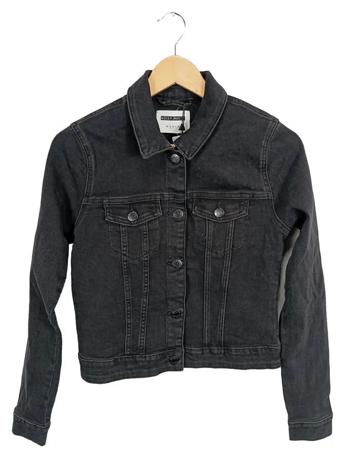 Damen Jeansjacke Gr. S Schwarz Langarm Casual Baumwolle