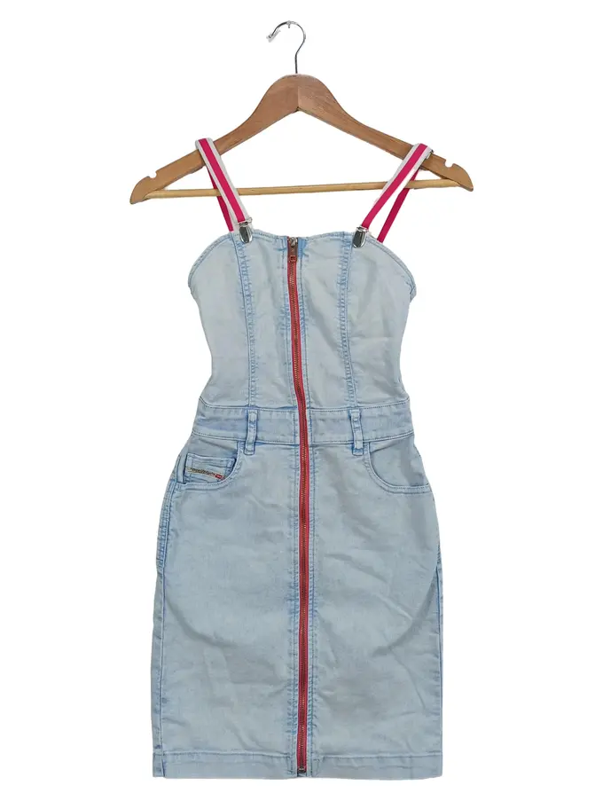 Damen Jeanskleid Gr. 32/2XS Blau Casual Baumwolle